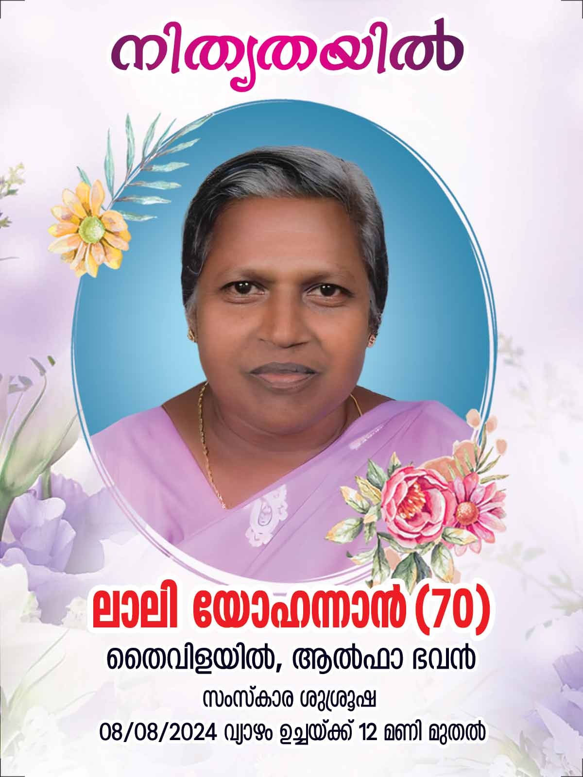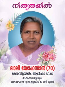 ശ്രീമതി. ലാലി യോഹന്നാന്‍  അന്തരിച്ചു