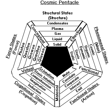 മനുഷ്യന്‍ എന്ന കൂടിനകത്തെ കൂടുകളുടെ വിന്യാസത്തെ (ഉപവ്യവസ്ഥകളുടെ ക്രമത്തെ) നോക്കിയാല്‍ അവ യഥാക്രമം അവയവങ്ങൾ, കലകൾ, കോശങ്ങൾ, ഡീ എൻ എ / ആർ എൻ എ, പ്രോടോപ്ലാസം, സംയുക്തങ്ങൾ, മൂലകങ്ങൾ, ആറ്റങ്ങൾ, ക്വാക്കുകൾ (പരമാണു) എന്നിങ്ങനെയും  മനുഷ്യന്‍ എന്ന കൂടിനു പുറത്തെ കൂടുകളുടെ വിന്യാസത്തെ (ഉപരിവ്യവസ്ഥകളുടെ ക്രമത്തെ) നോക്കിയാല്‍ അവ യഥാക്രമം ജീവിവർഗം, ജീവരാശി, ഗയ്യാ (ഭൂമി), സൌരയൂഥം, ആകാശ ഗംഗാ, പ്രപഞ്ചം  എന്നിങ്ങനെയും  ക്രമീകരിച്ചിട്ടുള്ളതായി കാണാം. പരമാണു മുതല്‍ പ്രപഞ്ചം വരെയും കൂടുകളായി, മാലപോലെ വിന്യസിച്ചിട്ടുള്ള ഈ ബൃഹദ് സംവിധാനത്തില്‍ ഒരു കണ്ണിക്കും ഒരു നിമിഷം പോലും മാറി നില്‍ക്കുവാന്‍ ആകില്ല.
