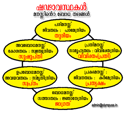 മോഹനിദ്ര : കര്‍മോത്സുകതയോടെ പ്രത്യക്ഷമായി നിലകൊള്ളുമ്പോള്‍  പ്രത്യക്ഷമാനസമോ (അപരമോ) പ്രതിമാനസമോ (പരമോ) നിയന്ത്രിതാവായി ജാഗ്രത് ബോധത്തിലേക്കും സ്വപ്ന ബോധത്തിലേക്കും ഒരു പക്ഷെ സുഷുപ്തിയിലെക്കും  യാത്ര ചെയ്യലാണ് മോഹനിദ്ര. പുറം മനസ്സുകളില്‍ നിന്നും അകം മനസ്സുകളിലേക്കുള്ള സംഭാഷണമാണ് മോഹനിദ്രയുടെ  പൂര്‍വ പരിണതി. തന്റെ ഘടനയുടെ പുനര്‍ വിന്യാസവും വിശ്രാന്തിയുടെ ബോദ്ധ്യവുമാണ് മോഹനിദ്രയുടെ ഉത്തര പരിണതി.