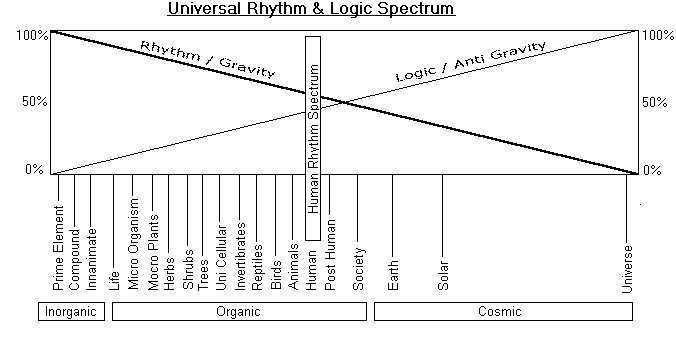 ഈ പ്രാപഞ്ചിക താള-യുക്തി രാജിയില് മനുഷ്യന്റെ അനുപാതത്തെ മാത്രമായി വിശദീകരിക്കുന്ന ഒന്നാണ് മനുഷ്യന്റെ താള-യുക്തി രാജി. (രണ്ടാം ഡയഗ്രം കാണുക )