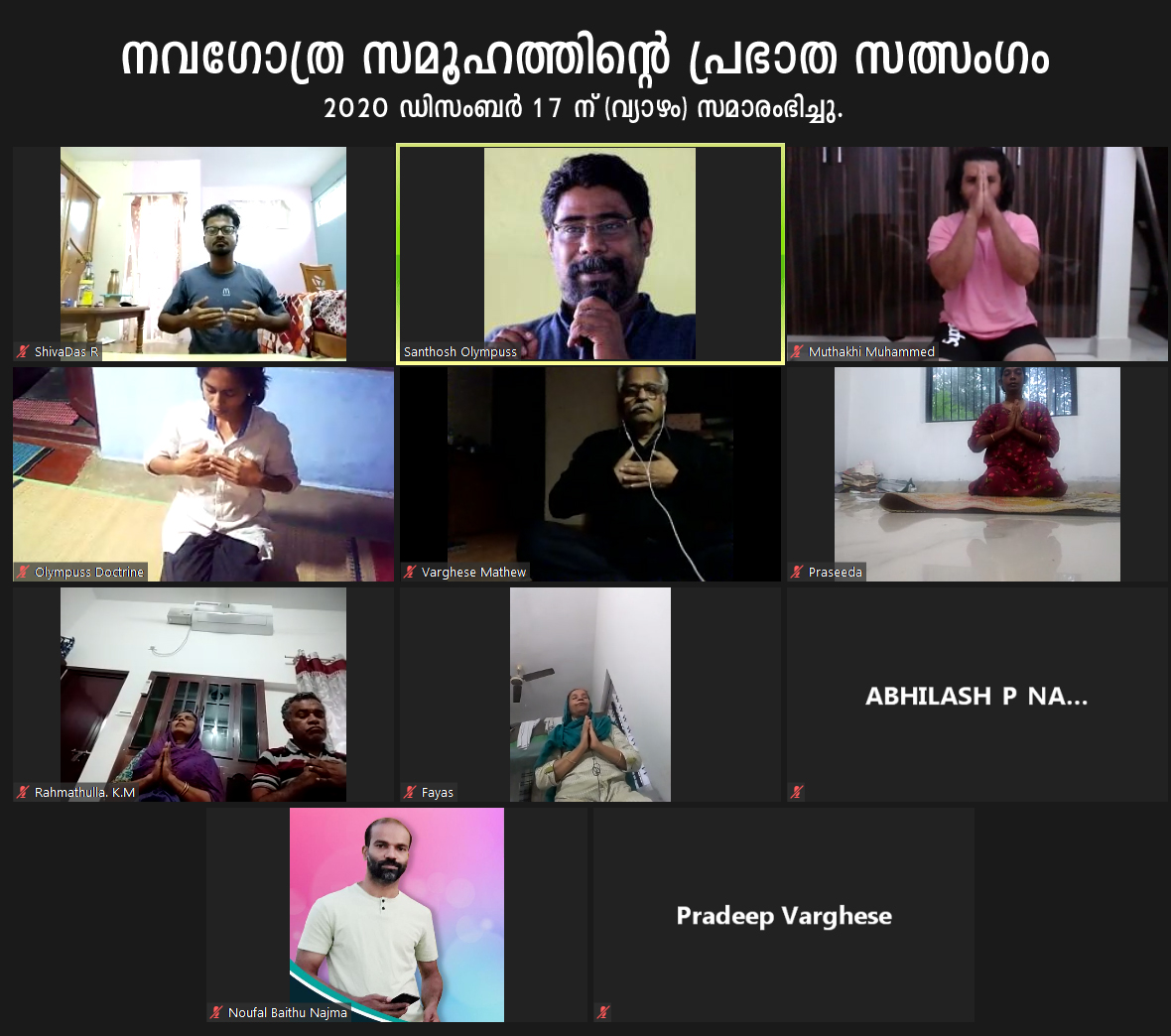 നവഗോത്ര സമൂഹത്തിന്റെ പ്രഭാത സത്സംഗം 2020 ഡിസംബര് 17 ന് (വ്യാഴം) സൂമില് സമാരംഭിച്ചു.