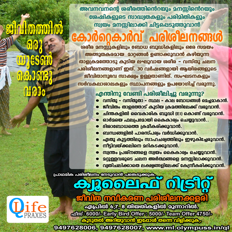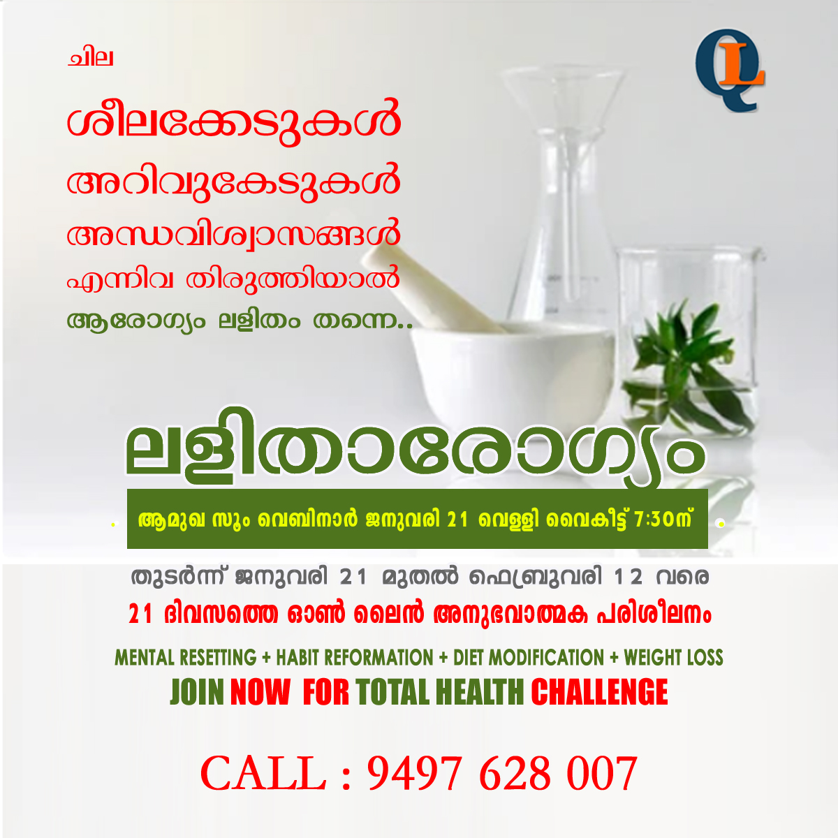 കൂടുതല് അറിയാന് : 9497 628 006 - ക്യൂലൈഫ് ഓണ്ലൈന് പരിശീലനം