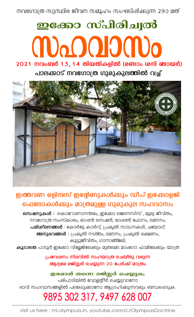 അടുത്ത പരിപാടിയെ പറ്റി അറിയാന് വിളിക്കുക : 9497628007 - ഗുരുകുലത്തിലെ പരിപാടികള്