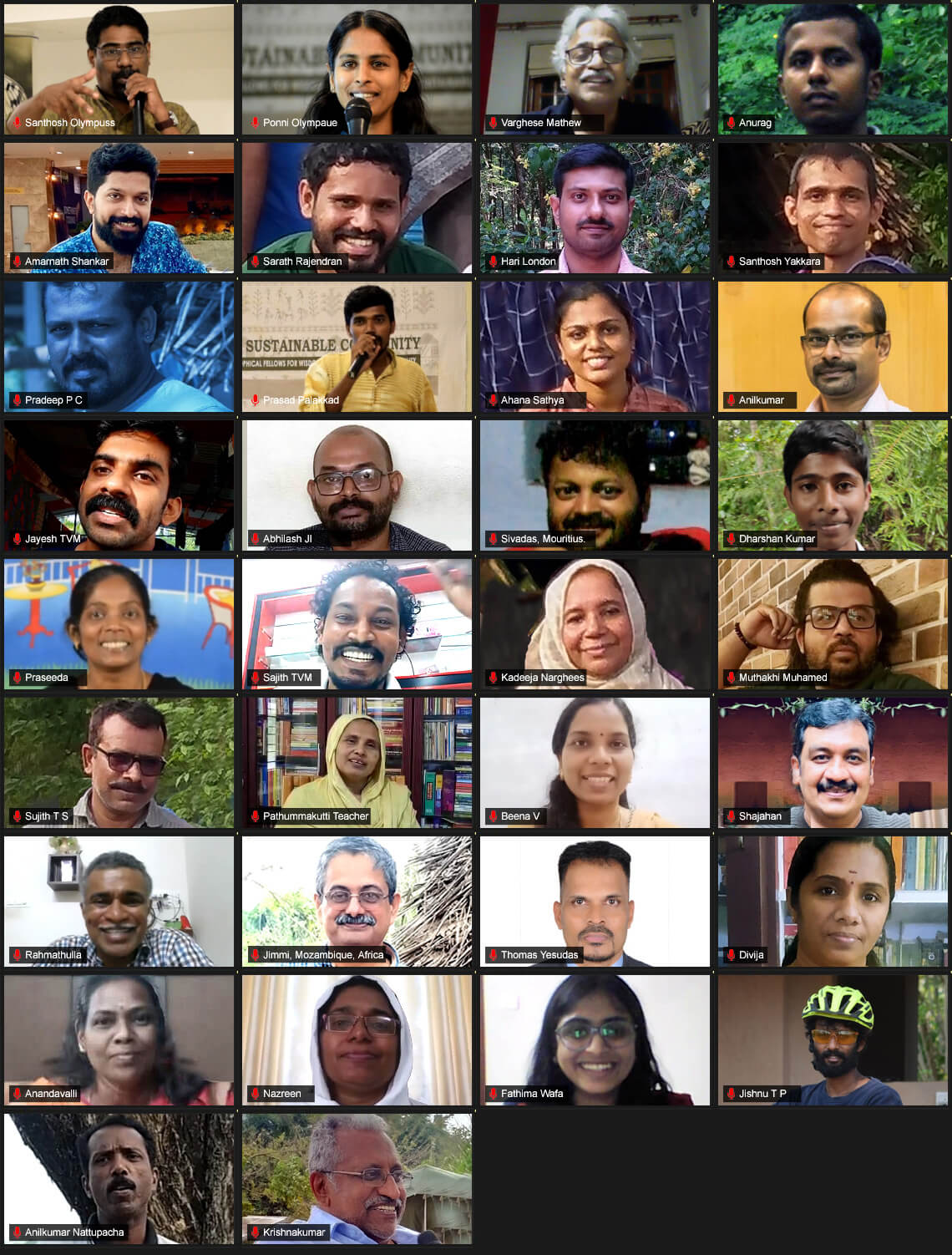 അല്പം ദൂരെ ഇരുന്നു കൊണ്ട് ആണെങ്കിലും സദാ സമയവും ഒരുമിച്ചെന്ന ഭാവത്തില് നമ്മുടെ ദേശീയ സംഘാടകന് വര്ഗീസ് ഏട്ടനും (ഡല്ഹി) അനുരാഗും ശിവദാസും (മൌറീഷ്യസ്) ജയേഷും സജിത്തും അഭിലാഷും പ്രസീദയും നര്ഗീസ് റ്റീച്ചറും സുജിത്തും ബീനയും ഫാത്തിമ റ്റീച്ചറും റഹ്മത്തുള്ള ചേട്ടനും നസ്രിനും ഷാജഹാനും (യൂ ഏ ഈ) ജിമ്മി ചേട്ടനും (മുസാംബിക് – ആഫ്രിക്ക) ഹരിയും (ബ്രിട്ടണ്) ഒക്കെയൊക്കെ ഫോണിന്റെയും സൂമിന്റെയും അപ്പുറത്തിരുന്നു കൊണ്ട് കൈകള് തരുന്നുമുണ്ട്.