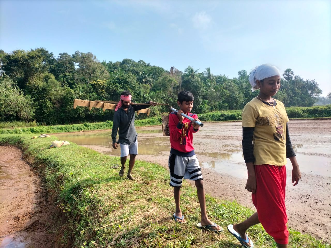 രണ്ടര ഏക്കറോളം കൃഷി ഭൂമിയാണ് ഉള്ളത്. വയലില് കുറച്ചു ഭാഗത്ത് മാത്രമാണ് കൃഷി ചെയ്യുന്നത്. ഒരു തവണ കുഞ്ഞുകുഞ്ഞു വിളവെടുത്തു. രണ്ടാം തവണ കുഞ്ഞുകുഞ്ഞു തന്നെ ചിറ്റുണ്ട പാകിയത് ആയി വരുന്നു. ഞങ്ങളെ പോലെ തന്നെ കൂടെ വളരുന്ന കളകളുമൊക്കെയായി കുഞ്ഞുകുഞ്ഞു സമരസപ്പെടുന്നുണ്ട്. പച്ചക്കറികള് ആയി വരുന്നേ ഉള്ളൂ.. അഞ്ചാറു വാഴയും ഒന്ന് രണ്ടു തെങ്ങും ഒക്കെ തലപൊക്കി തുടങ്ങി. ഇടയ്ക്ക് പന്നികളും മയിലുകളും സന്ദര്ശിച്ചിട്ടു പോകുന്നുണ്ടെങ്കിലും ഒരു ഹോമിയോ മരുന്നിന്റെ സ്പര്ശനം ഉള്ളത് കൊണ്ട് ആരും ബുദ്ധിമുട്ടിക്കുന്നില്ല.