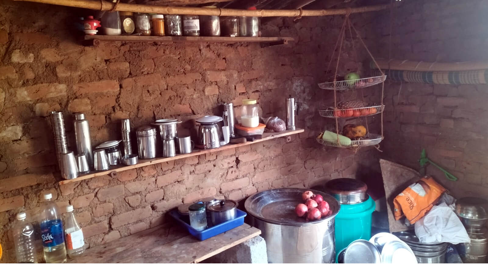 പുഴയോരത്ത് മുന് ഉടമകള് പണിത പഴയ ഒരു മോട്ടോര്പ്പുര മോഡിഫൈ ചെയ്തു അടുക്കള ആക്കി. ചെറിയ ഒരു അടുപ്പ് കെട്ടി, സഹവാസങ്ങള്ക്കും ക്യാമ്പുകള്ക്കും പാകത്തില് ഗ്യാസ് സ്ട്ടൌവുകള് കരുതിയിട്ടുണ്ട്. ബയോ ഗ്യാസ് പ്ലാന്റ് ഭാവിയില് ഉണ്ടായി കഴിയുമ്പോള് മാത്രമേ ഇക്കാര്യത്തില് സമ്പൂര്ണ സ്വാശ്രയത്വം ഉണ്ടാകുകയുള്ളൂ.