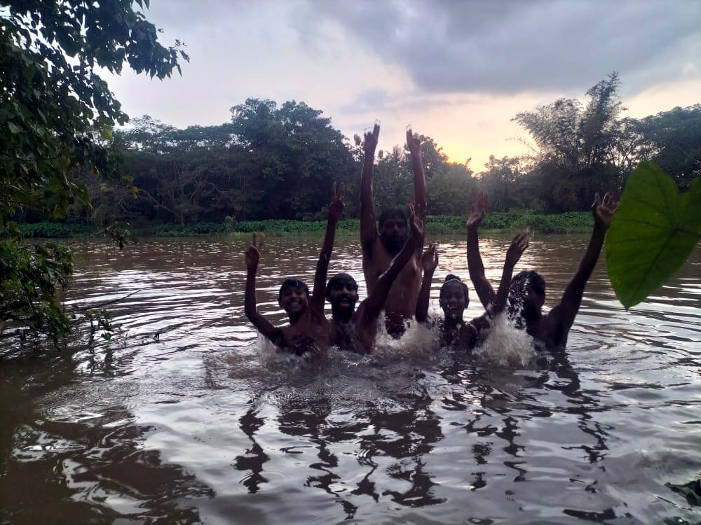 കുളിയൊക്കെ മുറ്റത്തു കൂടി ഒഴുകുന്ന മംഗലംപുഴയില് തന്നെ. ഈയുള്ളവര് വെളുപ്പിനെ ഉണര്ന്ന ഉടന് പുഴയില് ചാടി കുളി കഴിഞ്ഞ ശേഷമാന് പ്രഭാത സത്സംഗത്തിന് ക്ലാസെടുക്കാന് ചെല്ലുക. പകലൊക്കെ ഉള്ള പണികളൊക്കെ തീര്ത്ത് ഒരു അഞ്ചര മണിയോടെ എല്ലാരും ചേര്ന്ന് പുഴയില് ചാടും. നീന്തലും കുട്ടികളോടോപ്പമുള്ള കളികളും ഒക്കെ ആയി ഒരു മണിക്കൂര് പുഴയിലായിരിക്കും. സഹവാസങ്ങള്ക്ക് വരുന്ന നീന്തല് അറിയാത്തവര്ക്കു വേണ്ടി കുറച്ചു കാര് ട്യൂബുകള് കരുതിയിട്ടുണ്ട്.